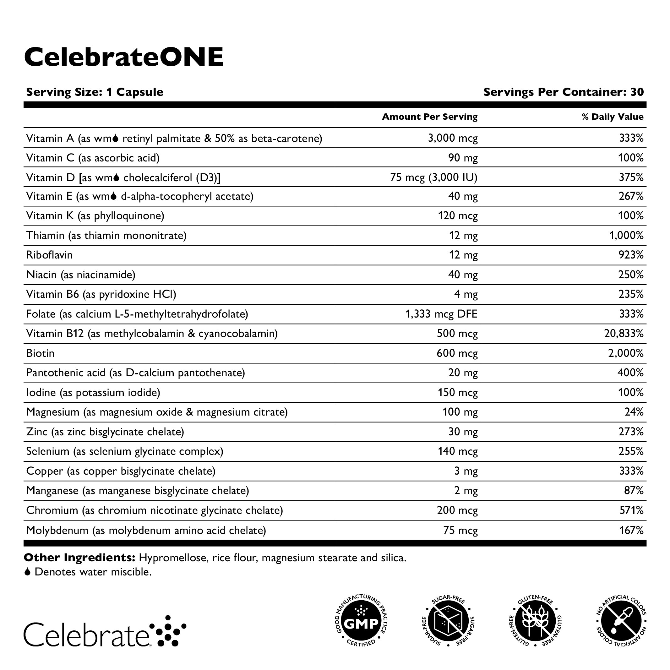 CelebrateONE is a complete bariatric multivitamin that only requires a single dose per day. Our formulation fulfills ASMBS recommendations for multivitamins and provides maximum bioavailability, as we carefully selected each form of vitamin and mineral to enhance interaction and absorption. Many supplements appear in the market, designed only to be easy to attract customers, cutting corners on formulation. Our answer was to make CelebrateONE, a single dose multivitamin without compromise on vitamin and mineral quality; CelebrateONE is available as a capsule and as a chewable.