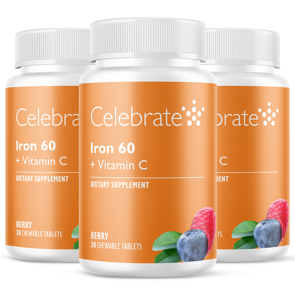 Our chewable iron tablets are available in a variety of dosages including 18 mg, 30 mg, 45 mg, and 60 mg iron levels. This bariatric supplement meets the ASMBS standards of iron supplementation after bariatric surgery. Celebrate iron will not stain teeth and our chewable flavours include Tangerine, Grape, and Berry.